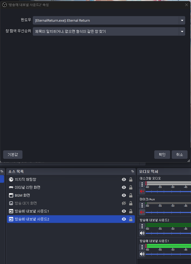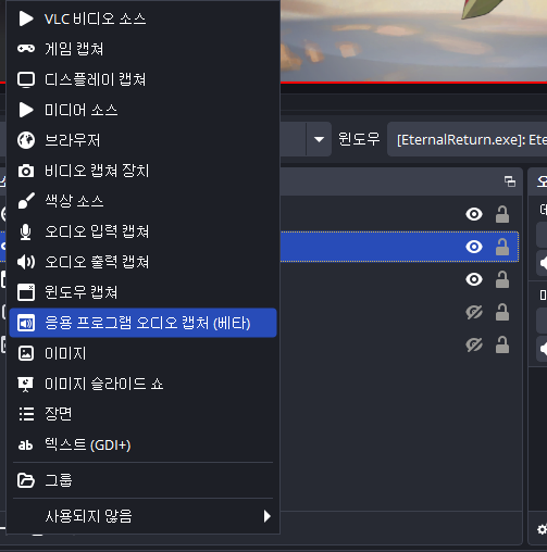 Informations/방송 방송에 특정 소리만 내보내고 싶은 경우 by 달다하 2025. 8. 6. 1. 응용 프로그램 오디오 캡쳐 추가 2. 방송에 내보내고 싶은 사운드 선택 3. 내보내고 싶지 않은 소리들은 음소거 처리 내보내고 싶은 사운드 종류가 여러개라면, 내보내고 싶은 사운드의 개수만큼 응용 프로그램 오디오 캡쳐를 만들어서 사용하면 된다. 공유하기 게시글 관리 달다하의 달빛 창고